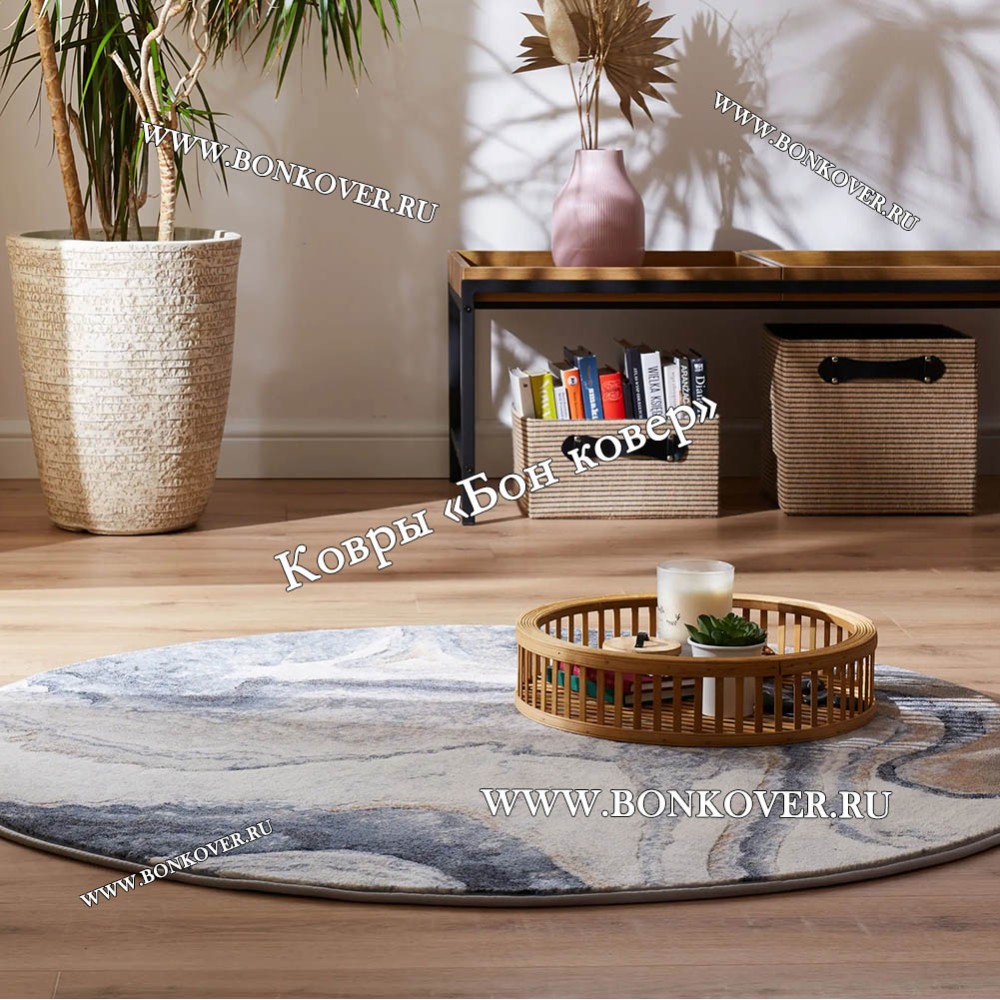 Ковер для гостиной Арт 28945 Круг Синий станет стильным преображением вашей комнаты, подчеркивая высокий статус хозяина.